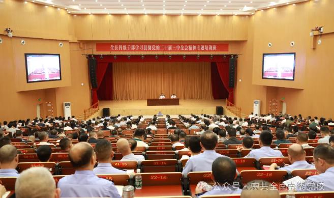 为深入学习贯彻党的二十届三中全会精神,结合我县实际,10月16日-18日,县委组织部、县委党校联合举办全县科级干部学习贯彻党的二十届三中全会精神专题培训班。本次培训采取县领导授课和专家专题辅导、分组研讨、个人自学相结合等方式进行,共550多名学员参训。